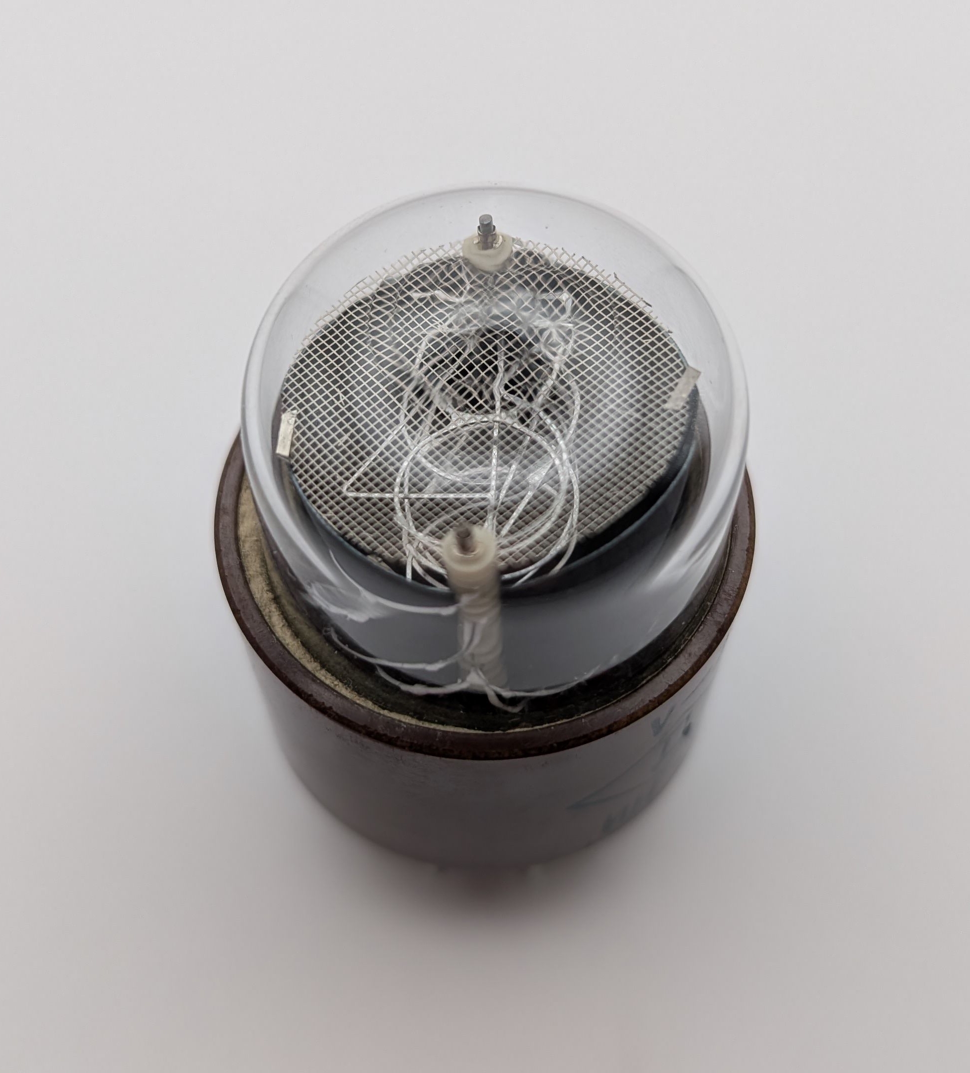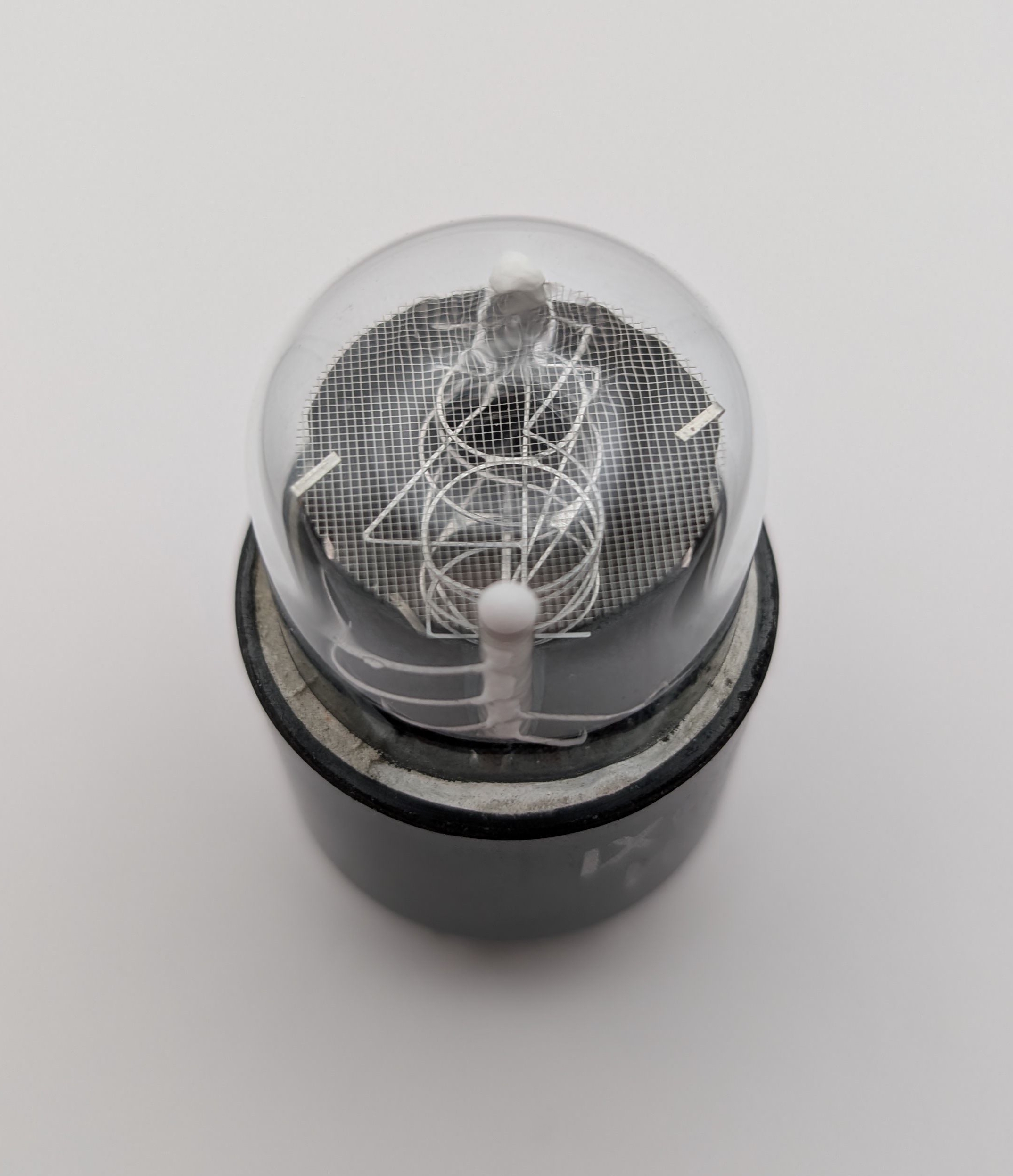 Two more unusual IN-1s have joined my collection. The first is another black-base example, this one produced in 1965, placing it near the start of the IN-1’s manufacturing run. Unlike the tubes shown earlier on this page, it was made at the Melz plant near Moscow and features the same unusually wide “4” seen in the other black-base IN-1. The second tube, dated 1971, stands out because it uses a proper “5” rather than the peculiar upside-down “2” typically found on IN-1s as well as a wide “4”. This shows that the use of an inverted “2” in place of a proper “5” was not a later cost-cutting decision, but rather an oddity that persisted into the later years of production.