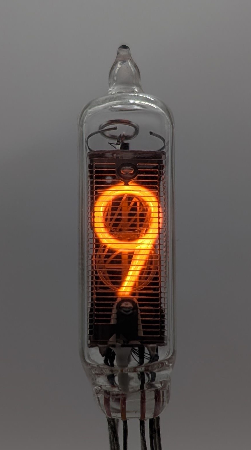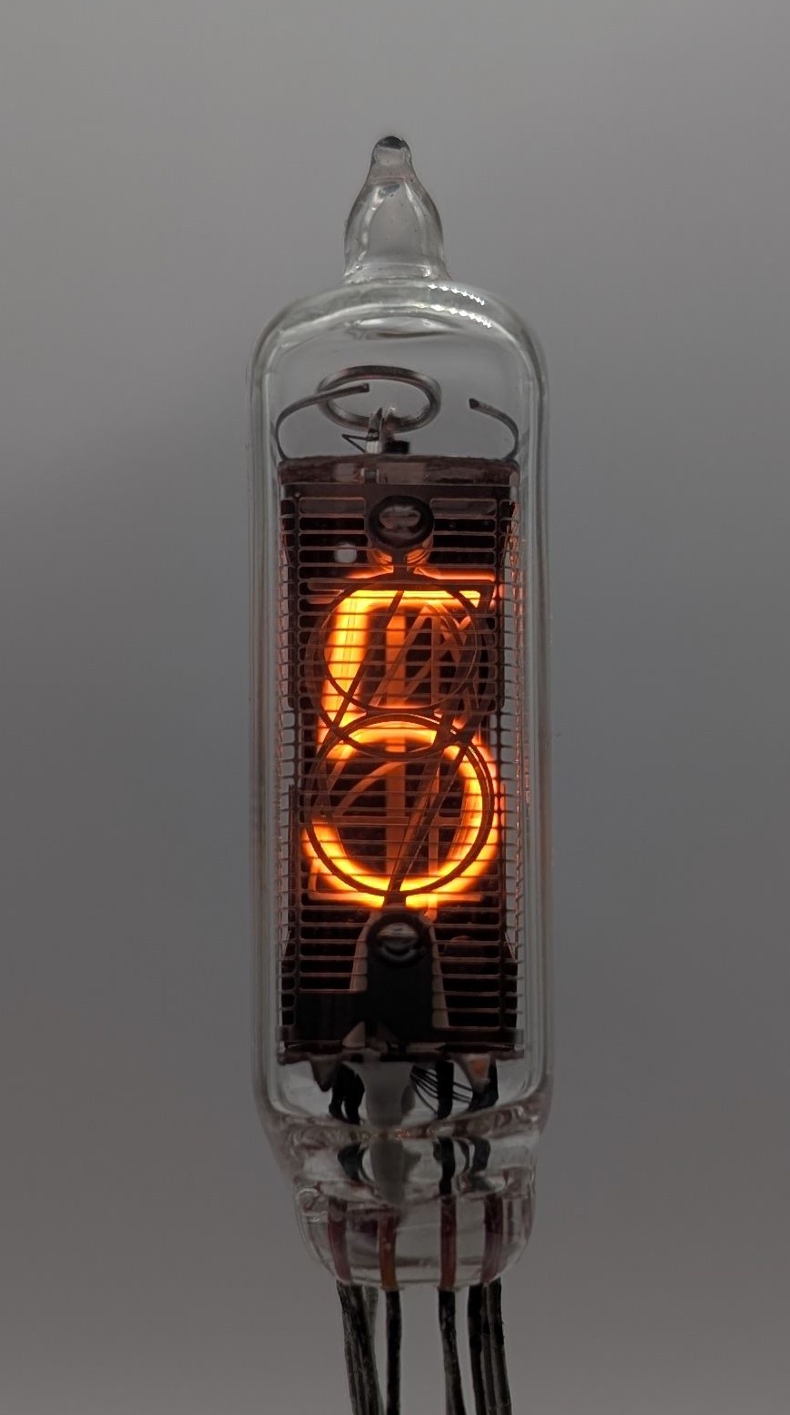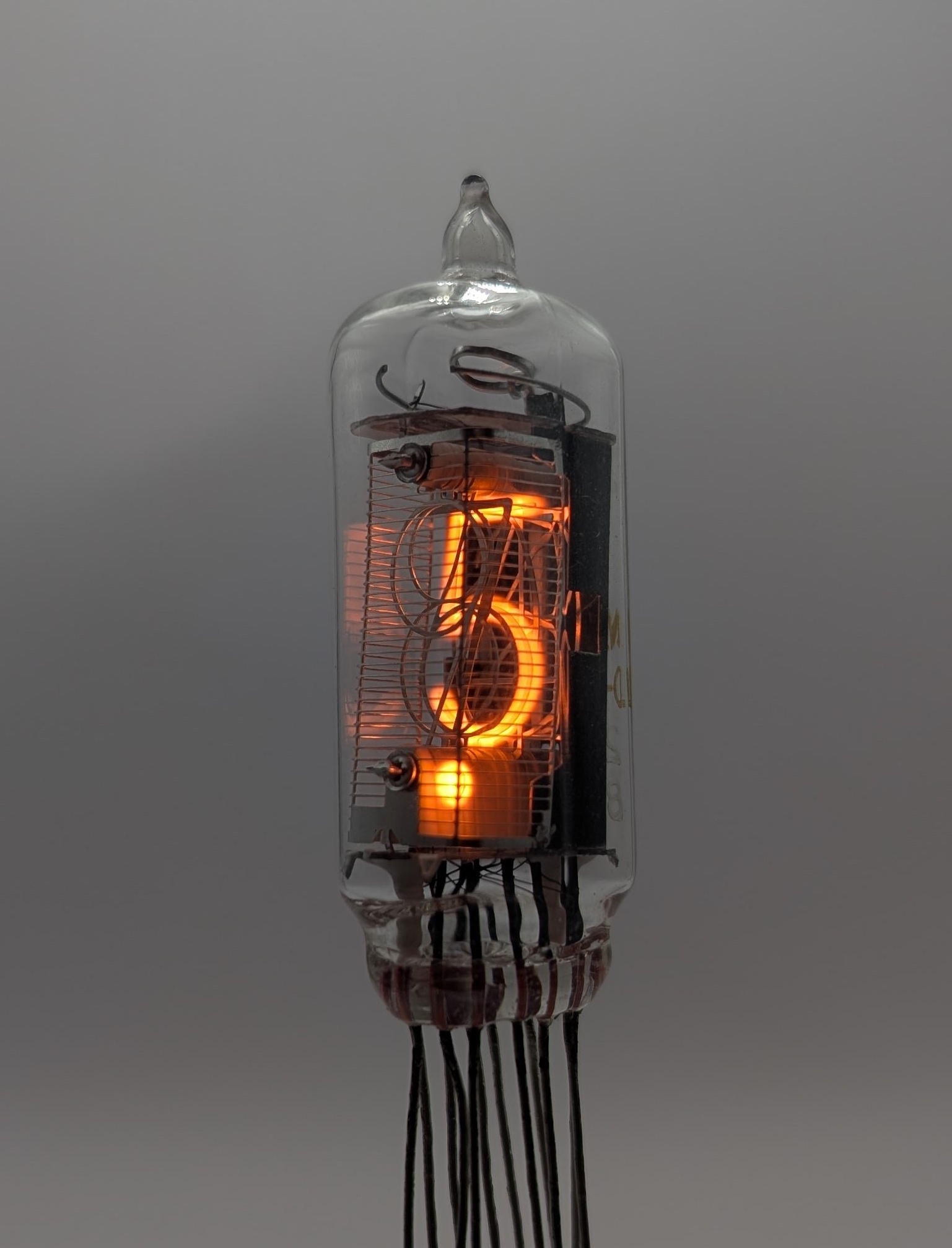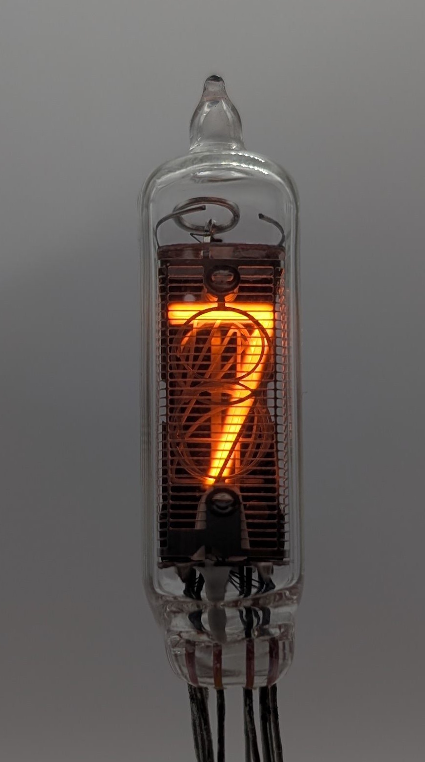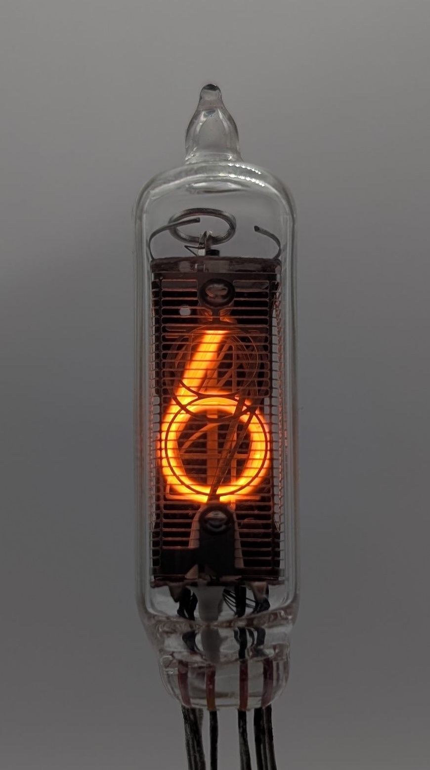 The LD-836 is a medium-sized Nixie tube manufacured by NEC in Japan, notable for its highly unusual, nearly rectangular glass envelope. This distinctive shape makes the tube’s front face significantly narrower than that of comparable Nixies and allows multiple tubes to be placed closer together in display assemblies. In addition to displaying the digits 0 through 9, the LD-836 also includes a right-hand decimal point. Its internal design closely resembles that of NEC’s CD66A, sharing a similar wire anode assembly, which leads to significantly improved digit visibility compared to the more typical grid design. The LD-836 is an exceptionally rare Nixie tube, with barely any information being available on it publicly.