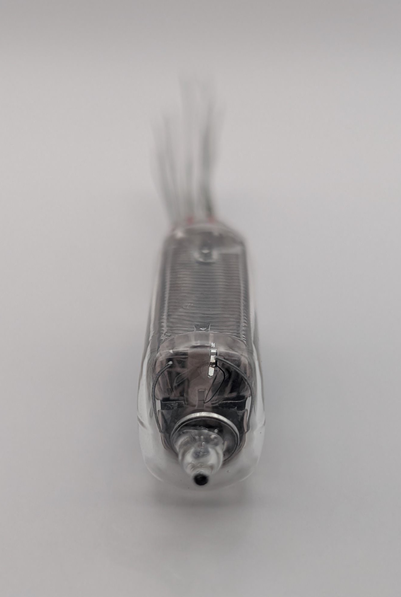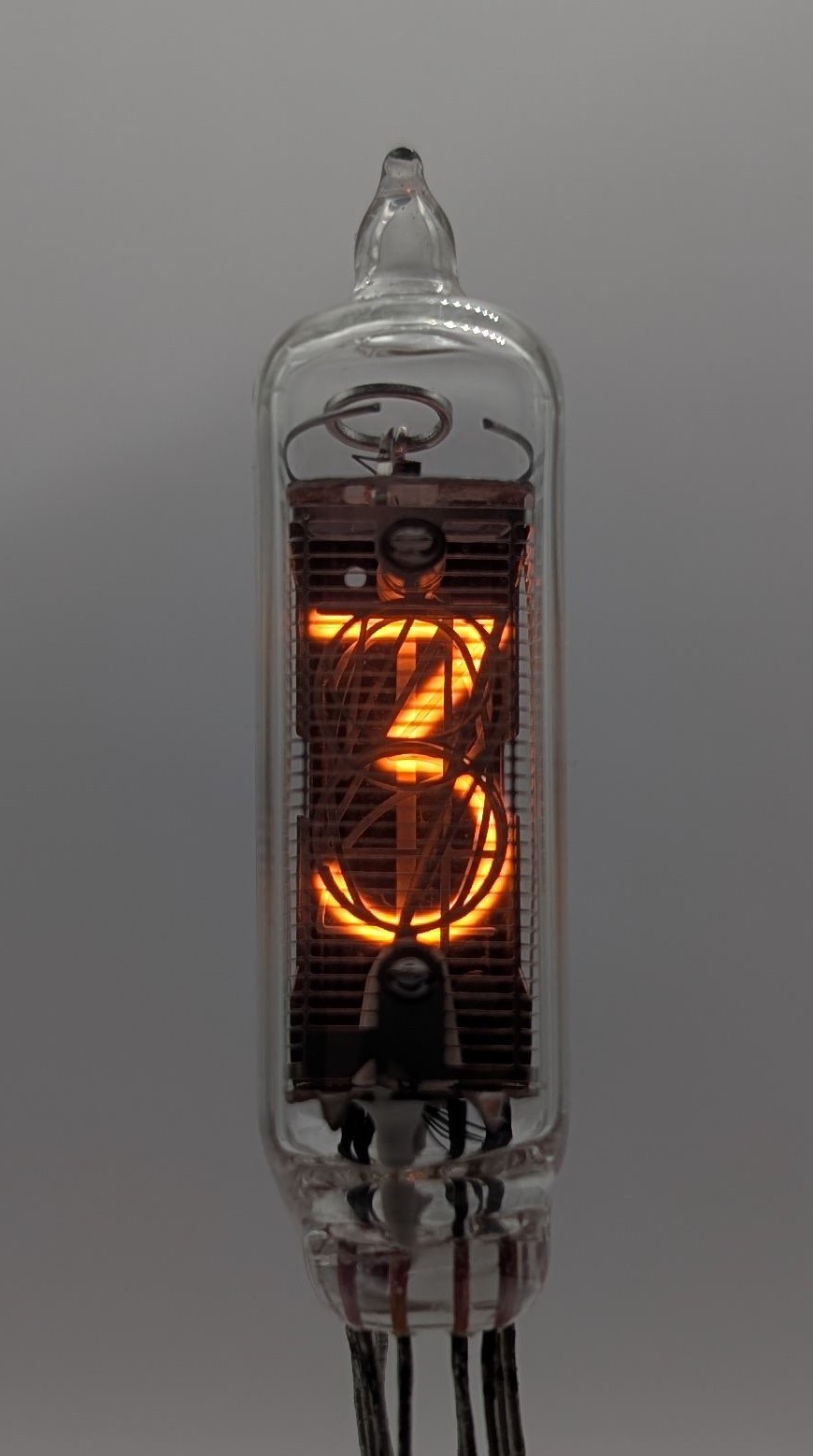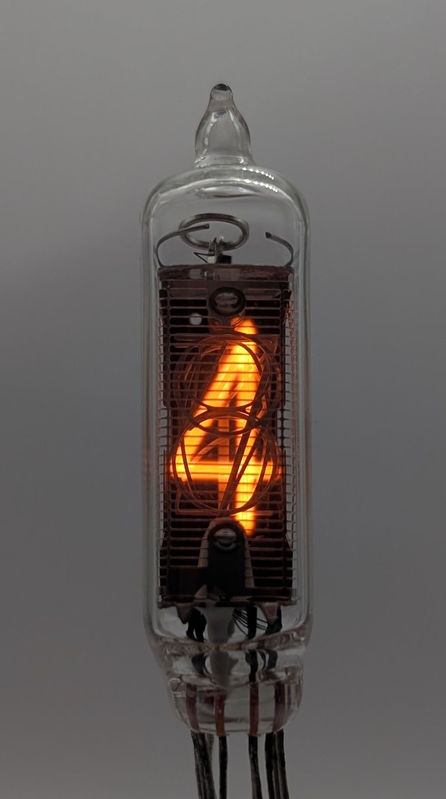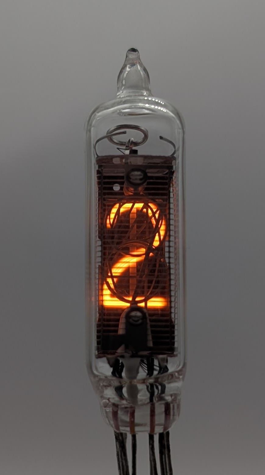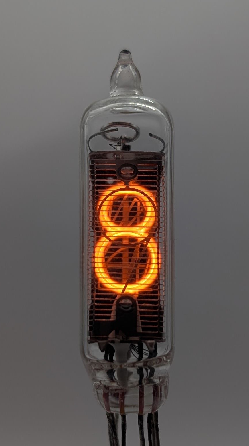 The LD-836 is a medium-sized Nixie tube manufacured by NEC in Japan, notable for its highly unusual, nearly rectangular glass envelope. This distinctive shape makes the tube’s front face significantly narrower than that of comparable Nixies and allows multiple tubes to be placed closer together in display assemblies. In addition to displaying the digits 0 through 9, the LD-836 also includes a right-hand decimal point. Its internal design closely resembles that of NEC’s CD66A, sharing a similar wire anode assembly, which leads to significantly improved digit visibility compared to the more typical grid design. The LD-836 is an exceptionally rare Nixie tube, with barely any information being available on it publicly.