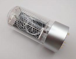 The R|Z568M is a massive modern Nixie tube produced by Dalibor Farný and his company. Each tube is manufactured by hand in the Czech Republic. As the name suggests, its design is meant to be reminiscent of the Z568M, the largest Nixie tube produced in the GDR. A picture below shows a comparison between the R|Z568M, an original Z568M, and a Z566M. Despite being the smallest of the three, the Z566M, with its 30mm digit height, is still considered a large tube. This makes the impressive scale of the R|Z568M, featuring 50mm digits, even more striking. The manufacturing process of an R|Z568M tube is documented in this video.